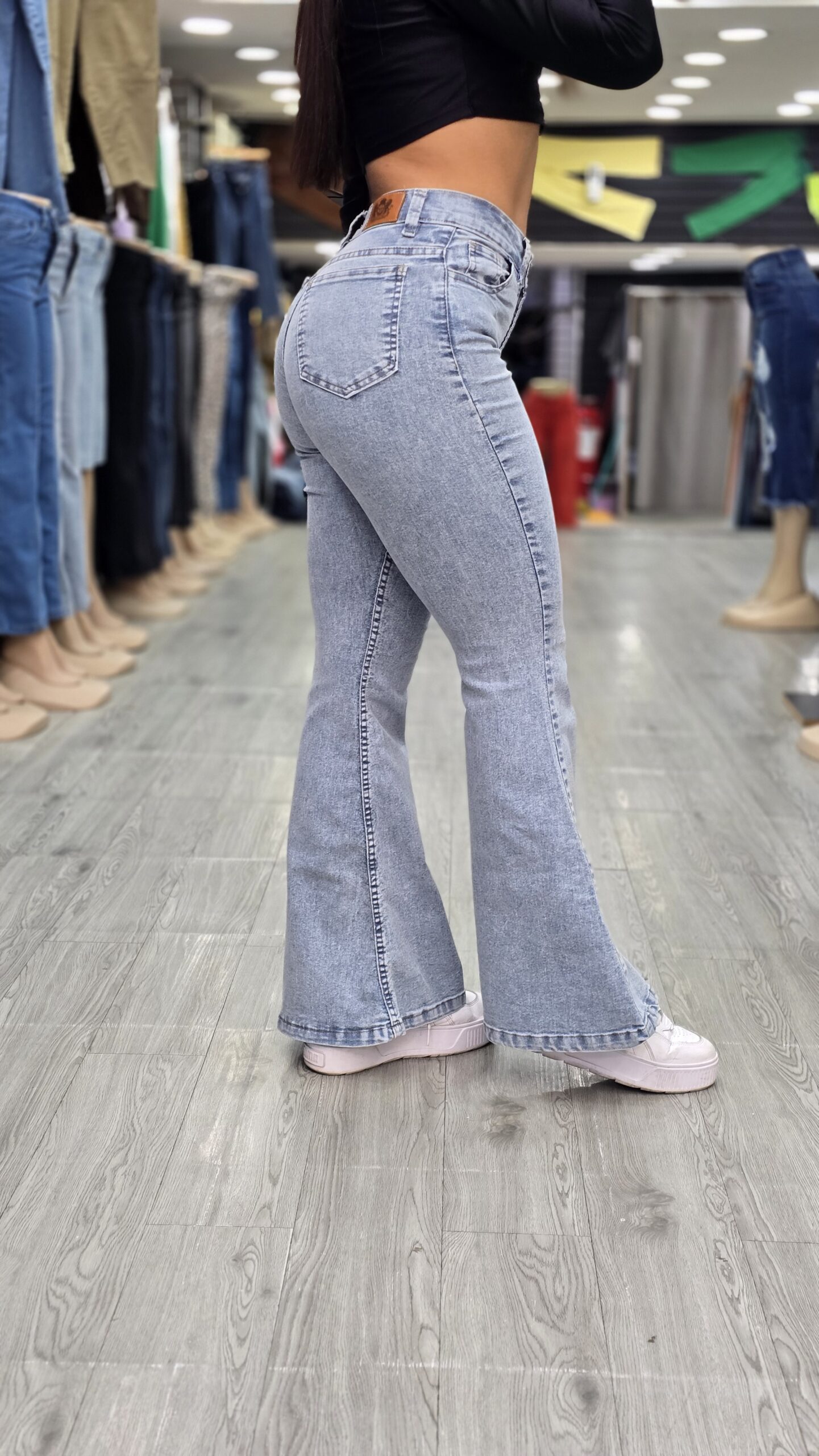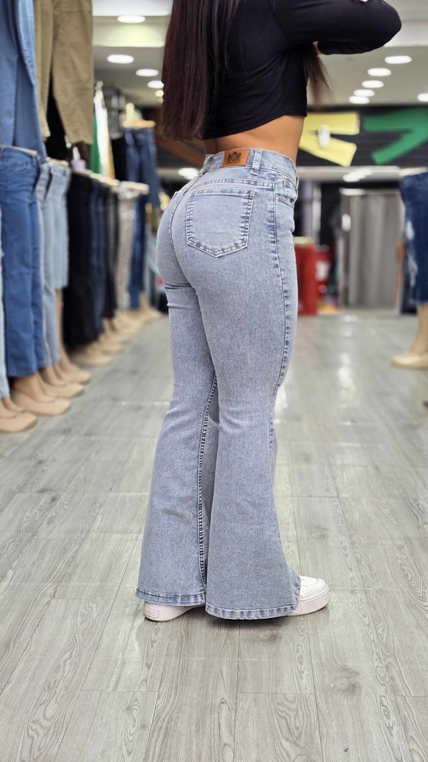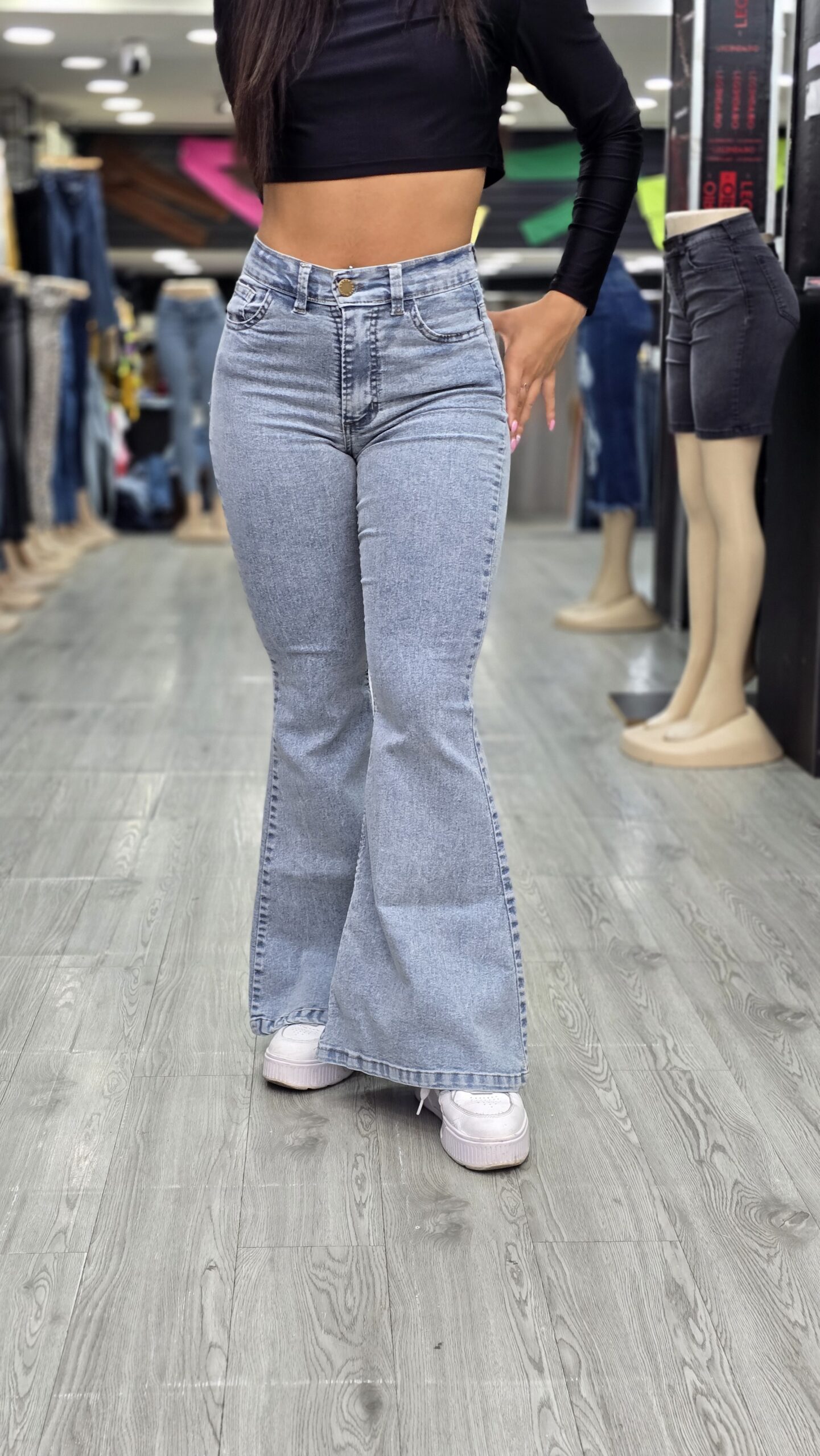 Un jean oxford súper cómodo, con calce perfecto y tono celeste claro reflex, ideal para looks frescos y modernos. Su tela con lycra acompaña cada movimiento, estiliza las piernas y realza la figura. Posee tiro alto, caída amplia desde la rodilla y un acabado suave que combina con todo.